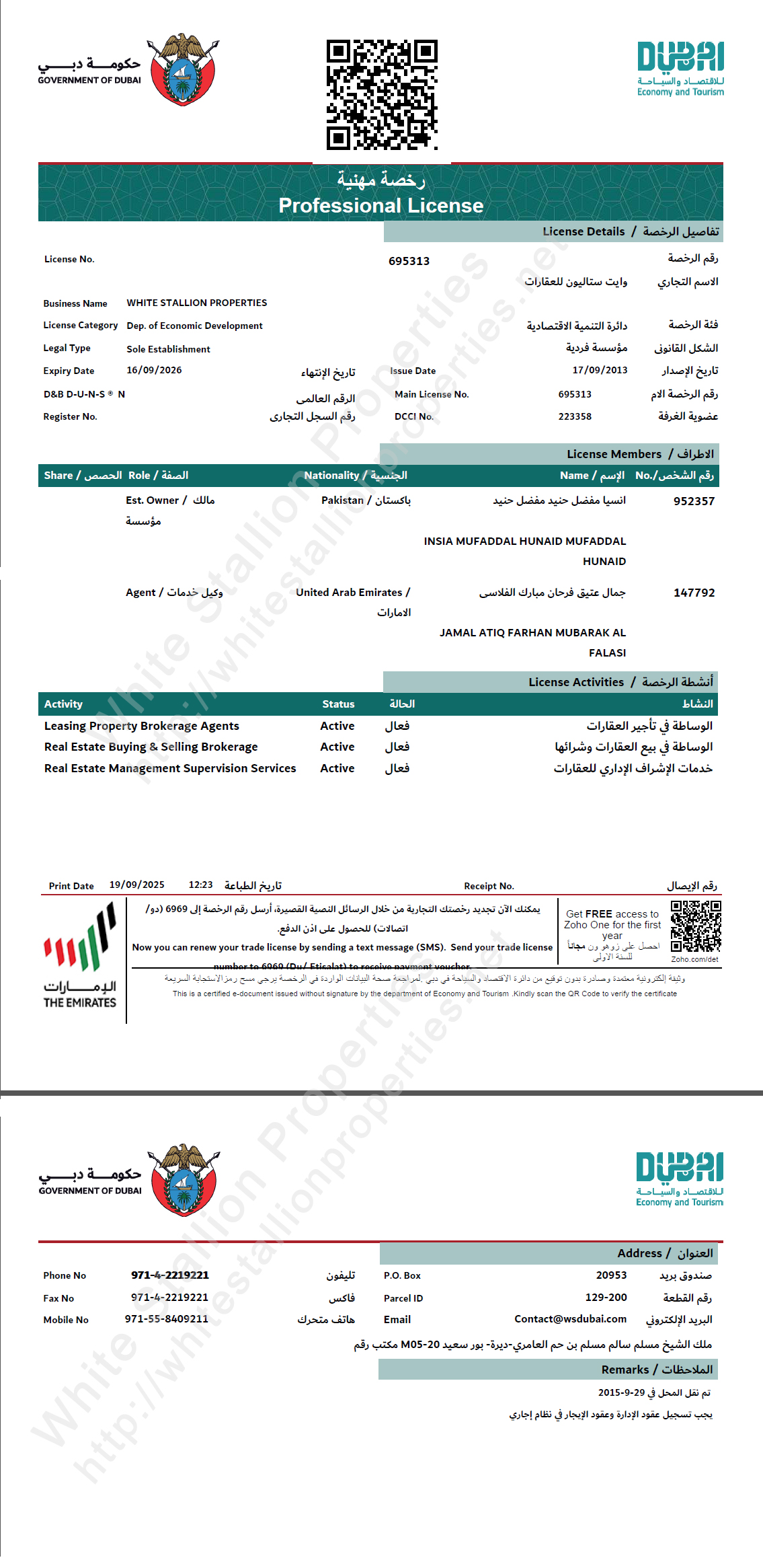 Mr. Hunaid and Mr. Mufaddal are founding members, value-added strategists possessing prominent name and repute in the field of real estate investment opportunities. The dynamic team explores opportunities that are available in Dubai and beyond to gain optimum advantage for our clients. We highly value show of loyalty from our clients who are provided with premium opportunities, as our prime motivation is to serve and retain our existing clients as well as attract new ones. Loyalty is considered to be a prime feature by our company-White Stallion Properties and therefore we reward it.